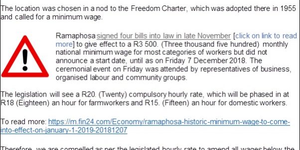 As per our last Channel Chat as indicated below regarding the NMW (National Minimum Wage) please note that as per legislation we have amended our payroll systems to apply the NMW as of 1 January 2019, to be applicable to all Temporary and or Contract Employees (Assignees) who earned below the NMW threshold.